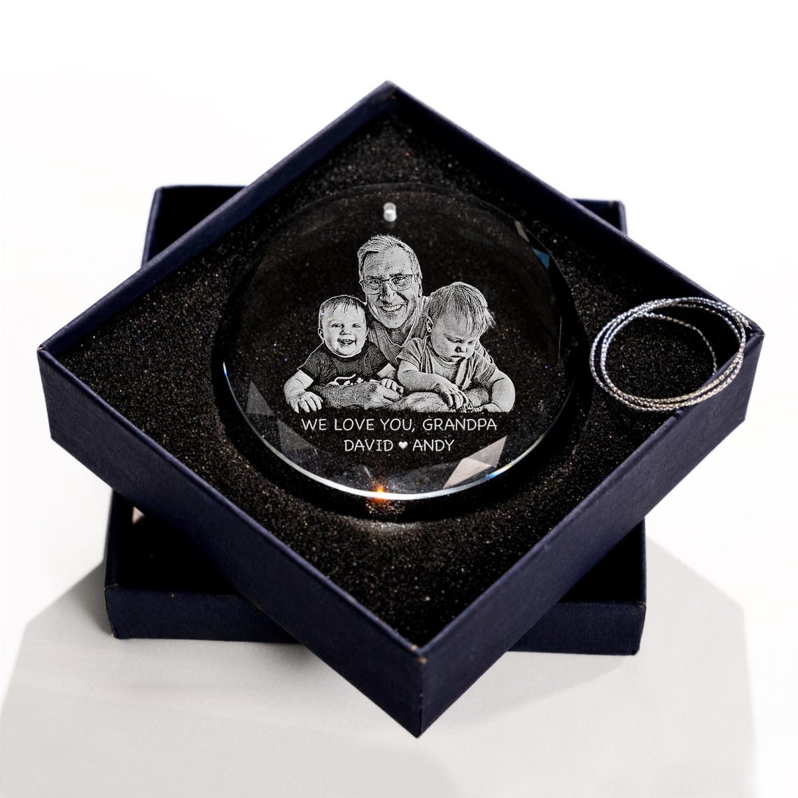 Make memories last a lifetime with this custom photo crystal ornament. Perfect for any occasion especially this Christmas, the 3-inch high-quality glass ornament is designed to be engraved with your favorite picture and comes with a gift box included. Make it an unforgettable gift!