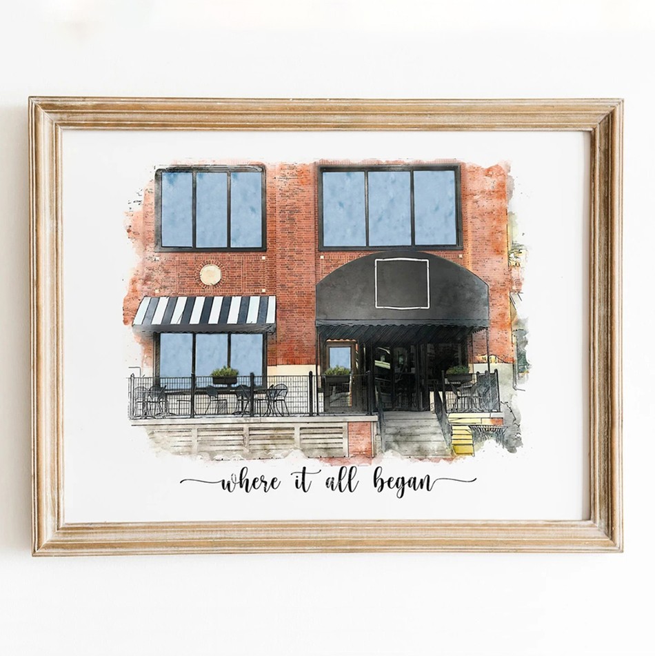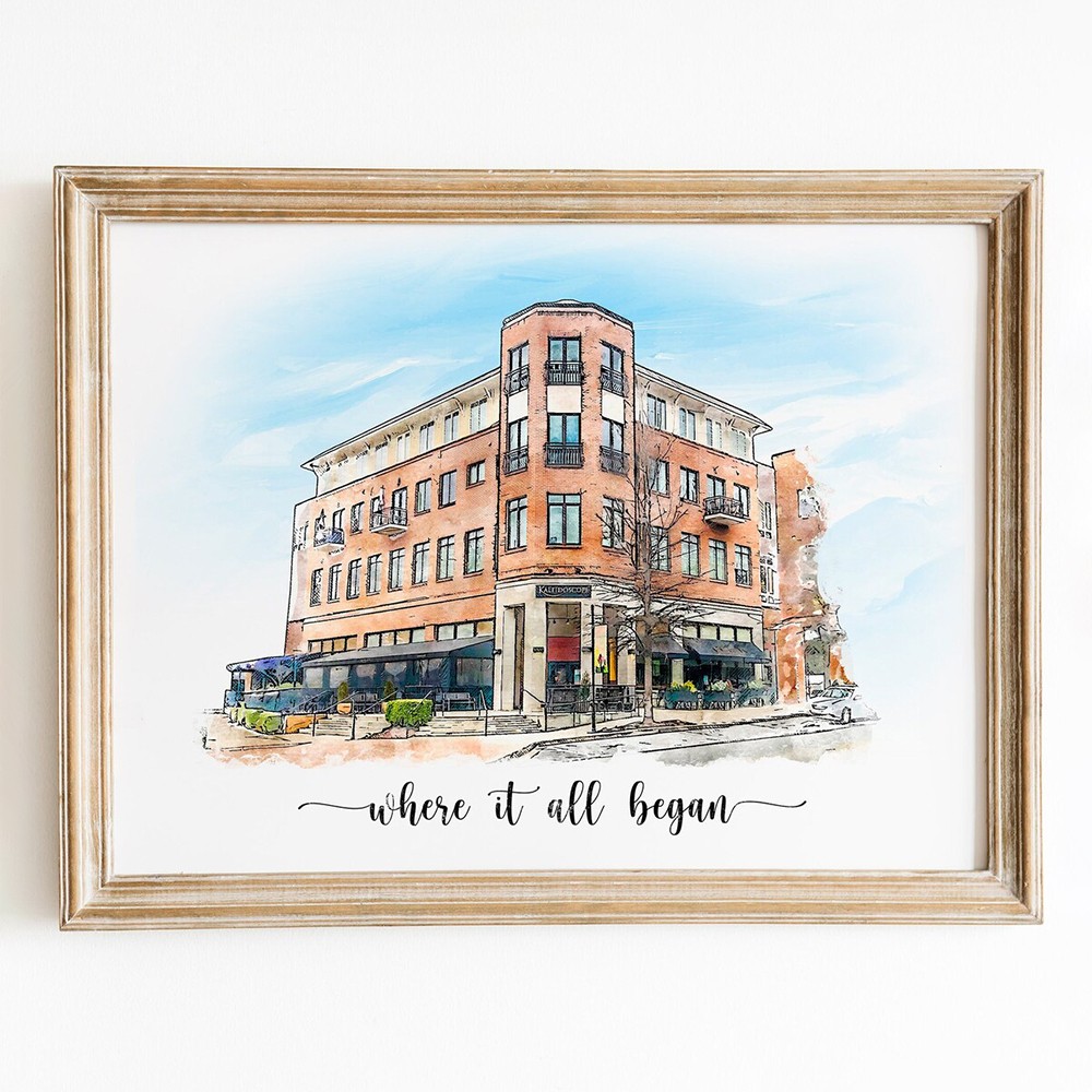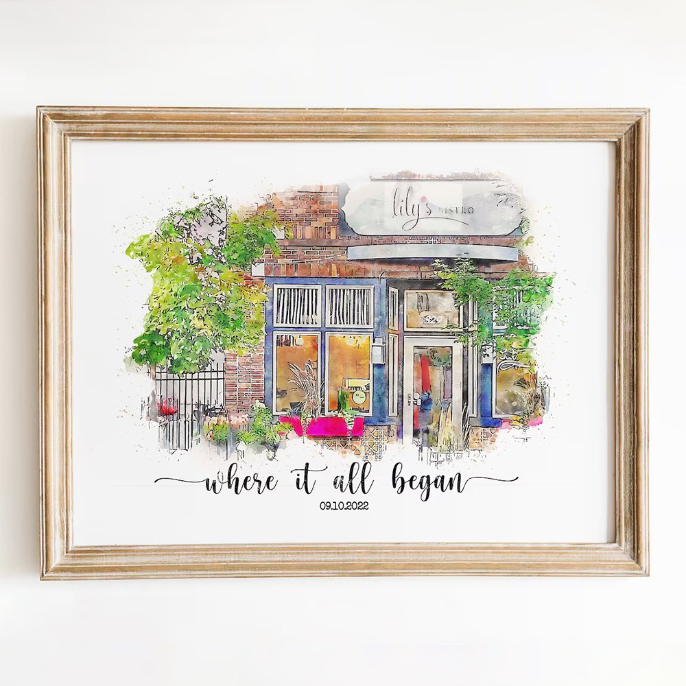 Custom Where We Met Watercolor Painting Sign Anniversary Gift for Couples