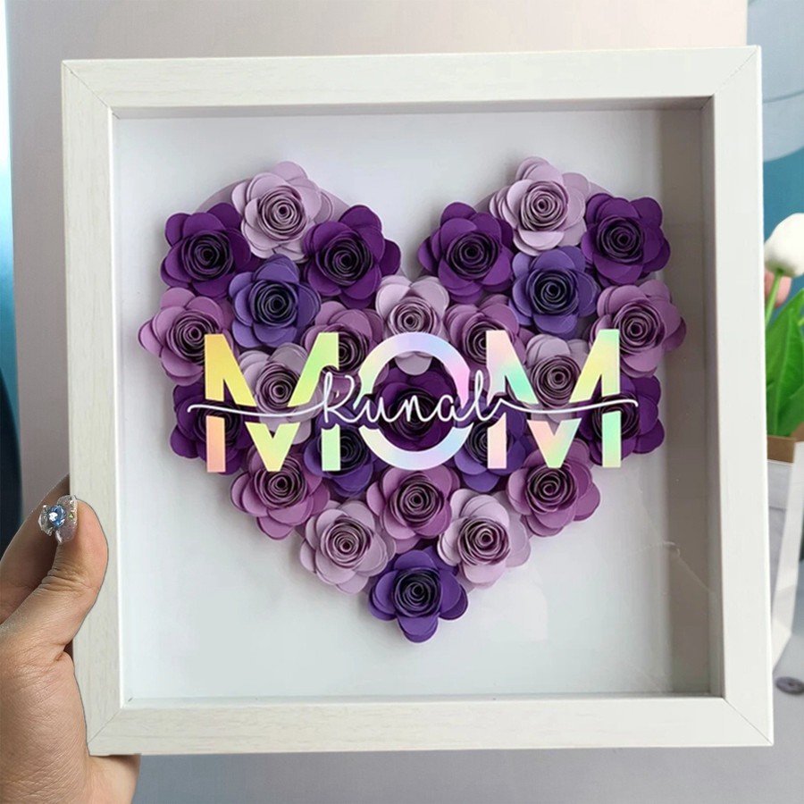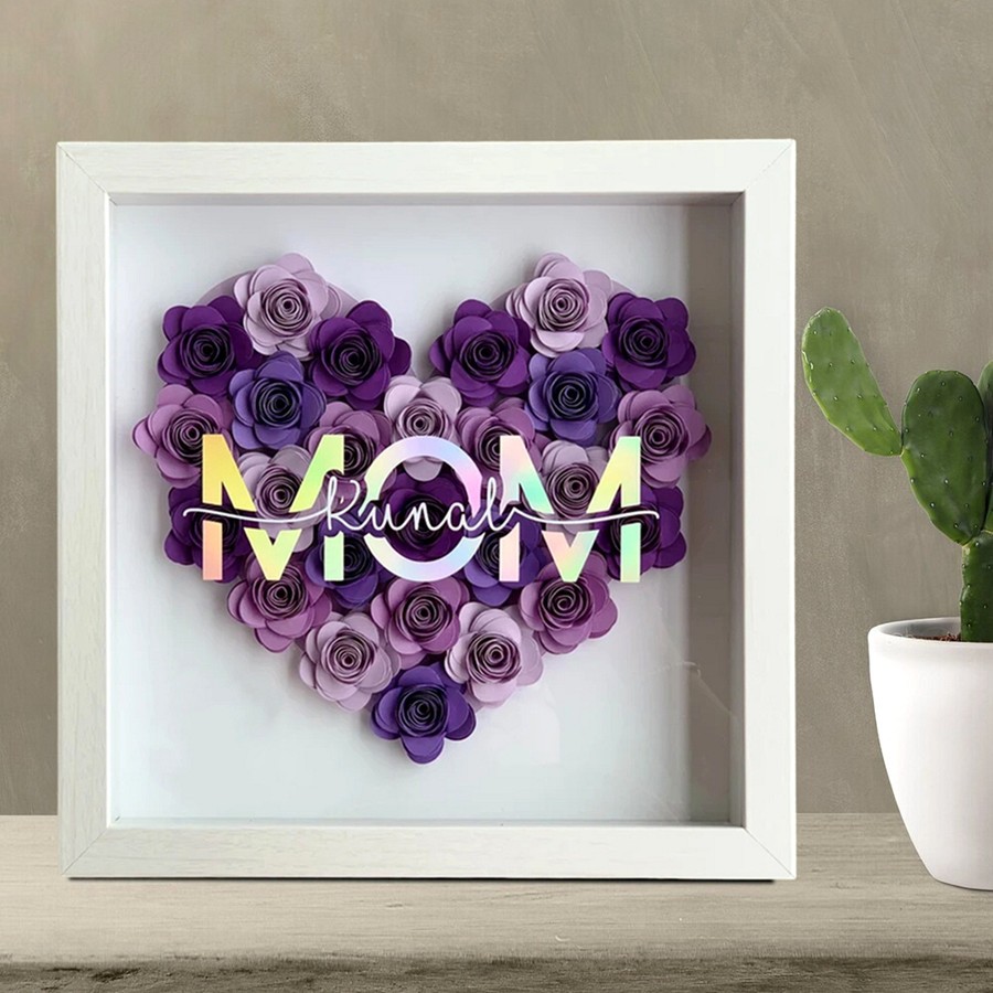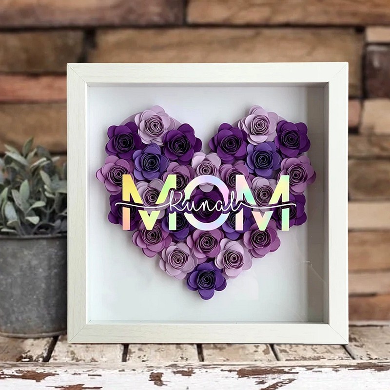 Mom Heart Shaped Monogram Flower Shadow Box Gift For Mothers