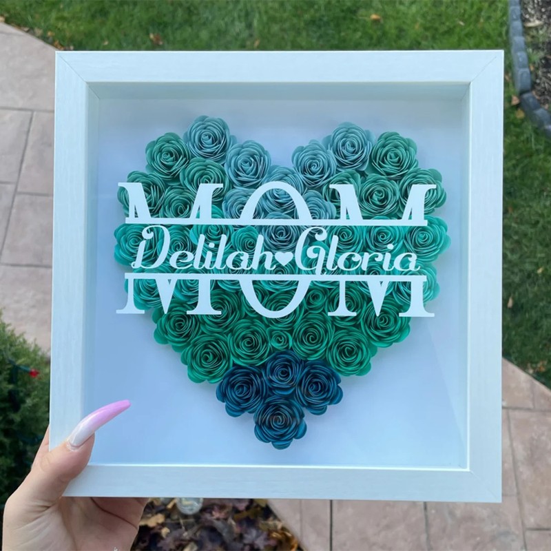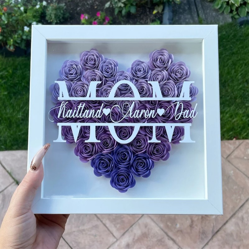 Mom Heart Shaped Monogram Flower Shadow Box Gift For Mothers