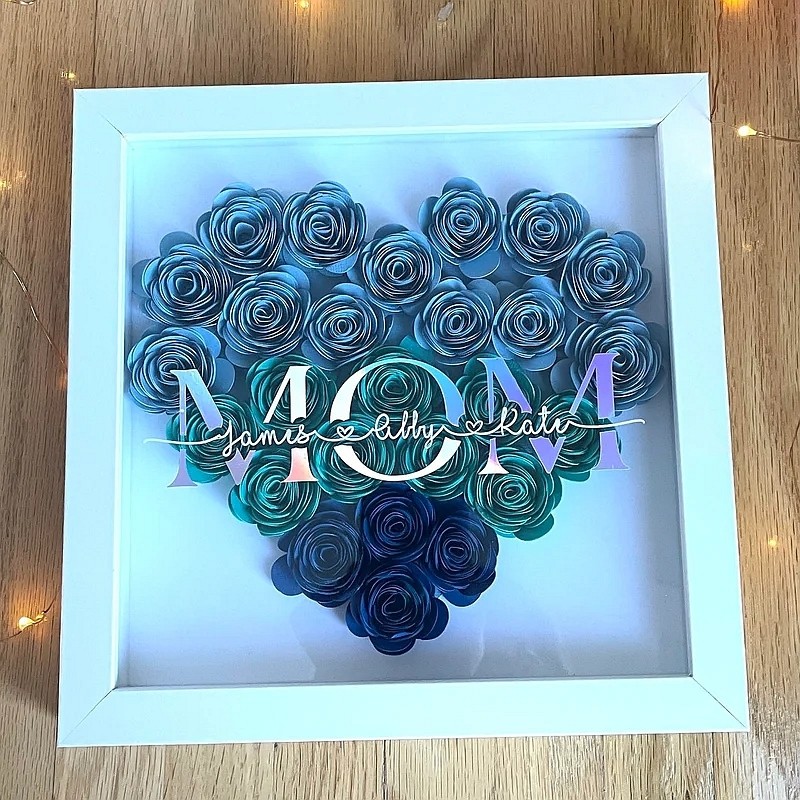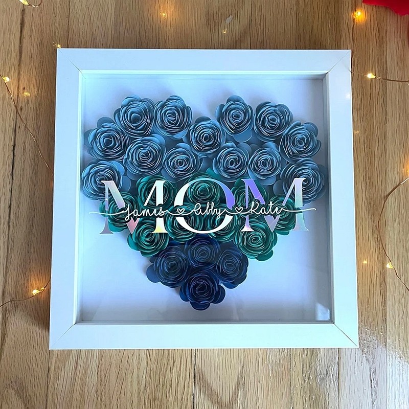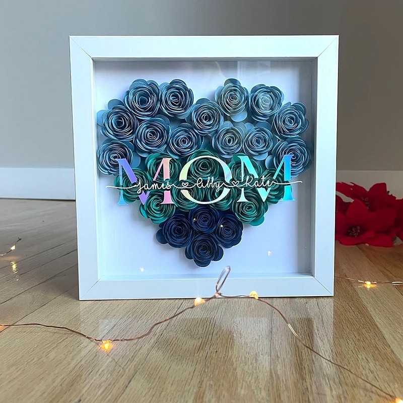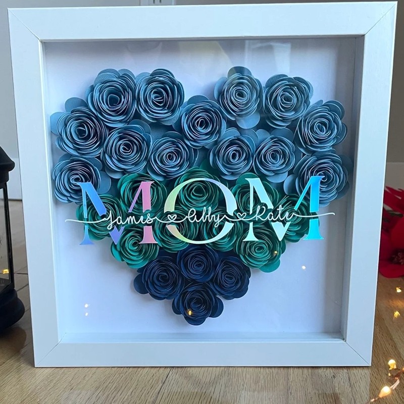 Mom Heart Shaped Monogram Flower Shadow Box Gift For Mothers