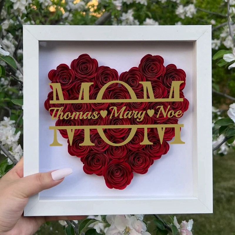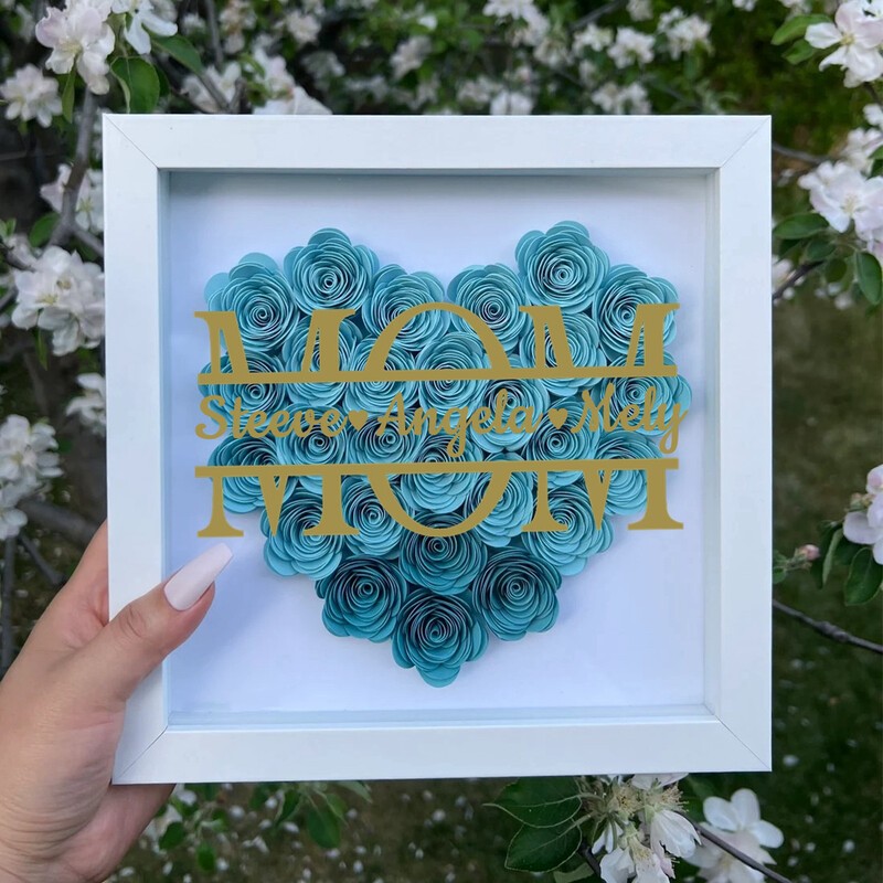 Mom Heart Shaped Monogram Flower Shadow Box Gift For Mothers