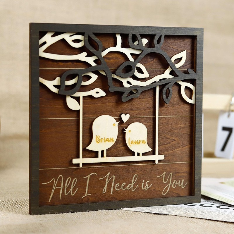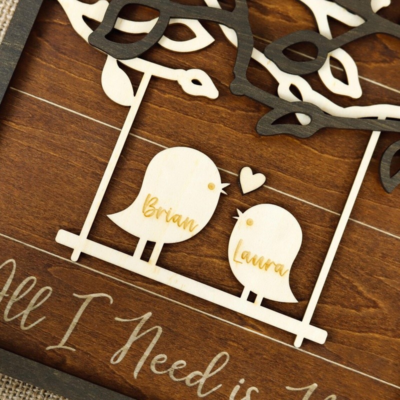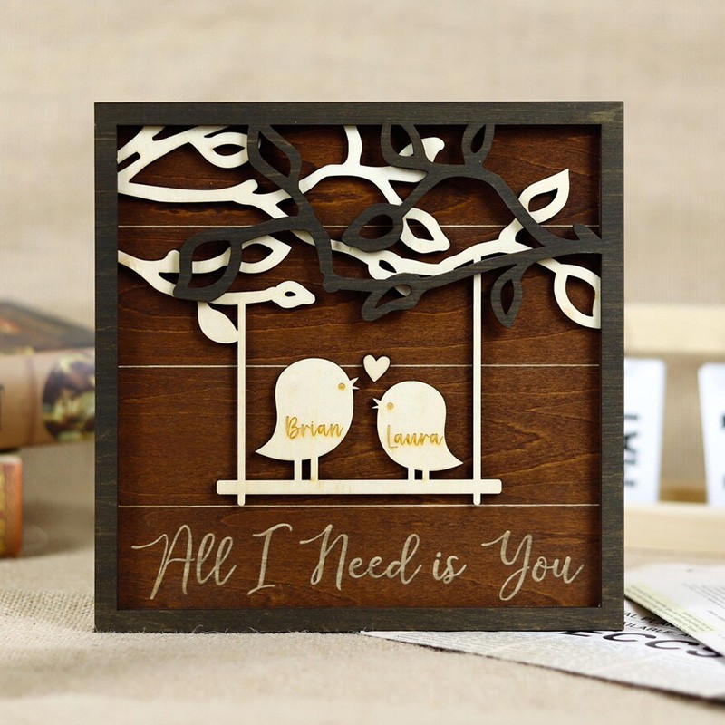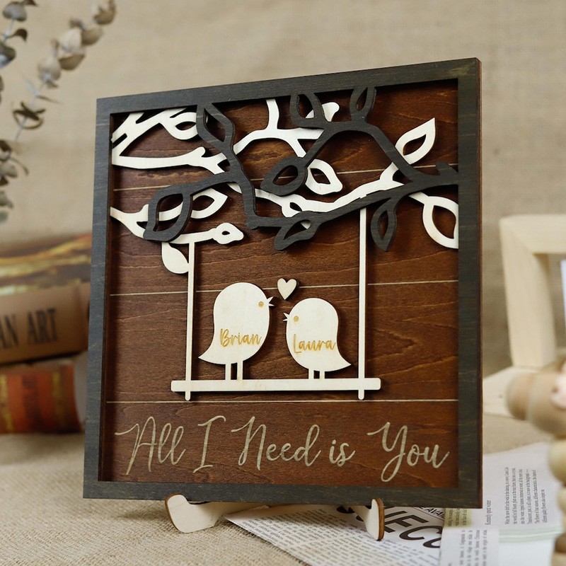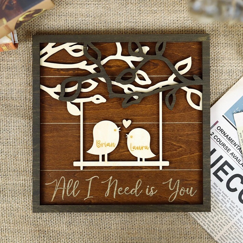 Personalized All I Need is You Love Birds Wood Sign for Valentine's Day Gift Idea Anniversary Gift for Couples