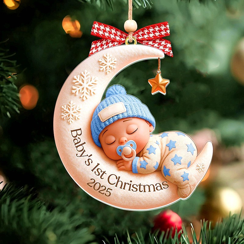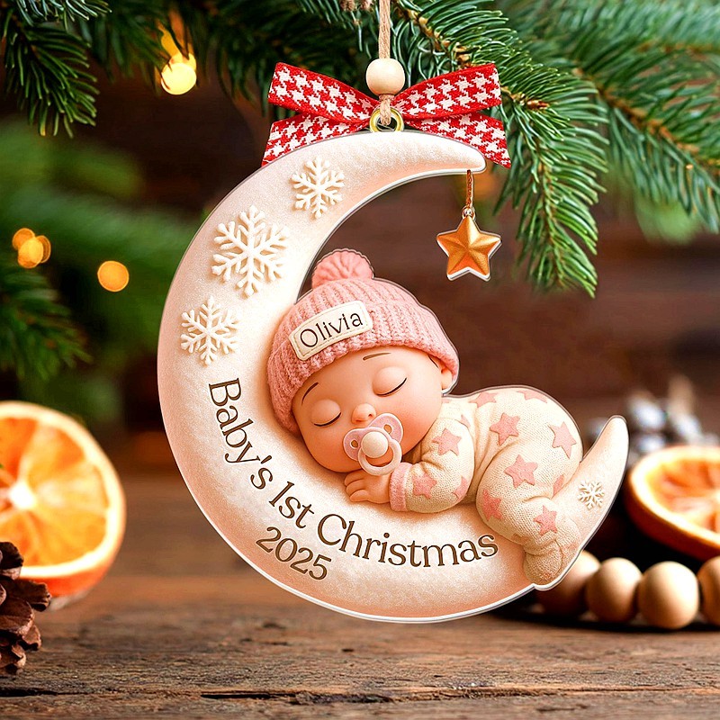 Personalized Baby's First Christmas 3D Effect Moon Acrylic Ornament Baby Gift Idea