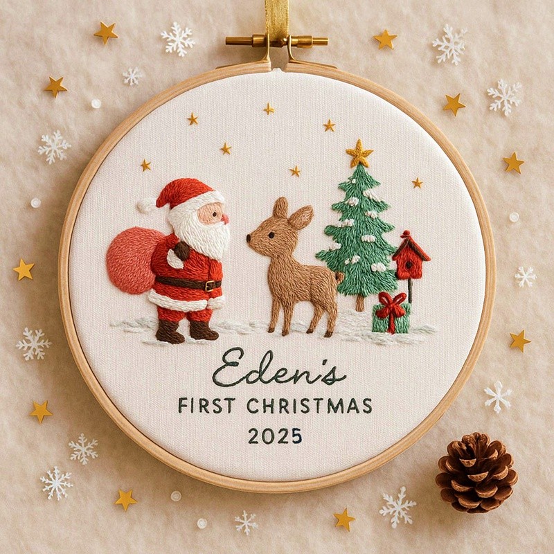 Personalized Baby's First Christmas Embroidered Ornament Keepsake