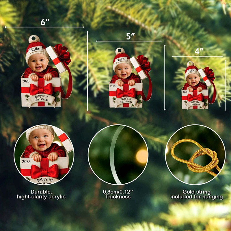 Personalized Baby's First Christmas Gift Box 2D Flat Acrylic Photo Ornament