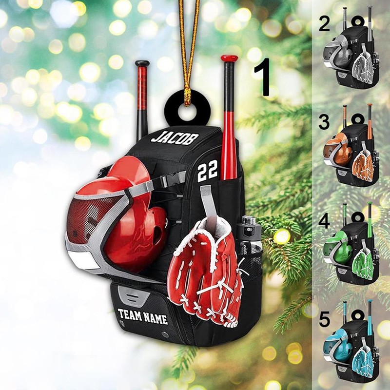 Personalized Baseball Bag with Helmet Baseball Ornament