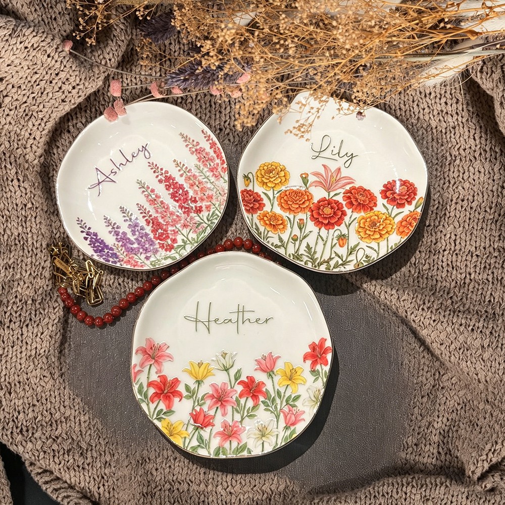 Personalized Birth Flower Jewelry Dish – Custom Watercolor Ring Tray for Birthdays & Bridesmaids