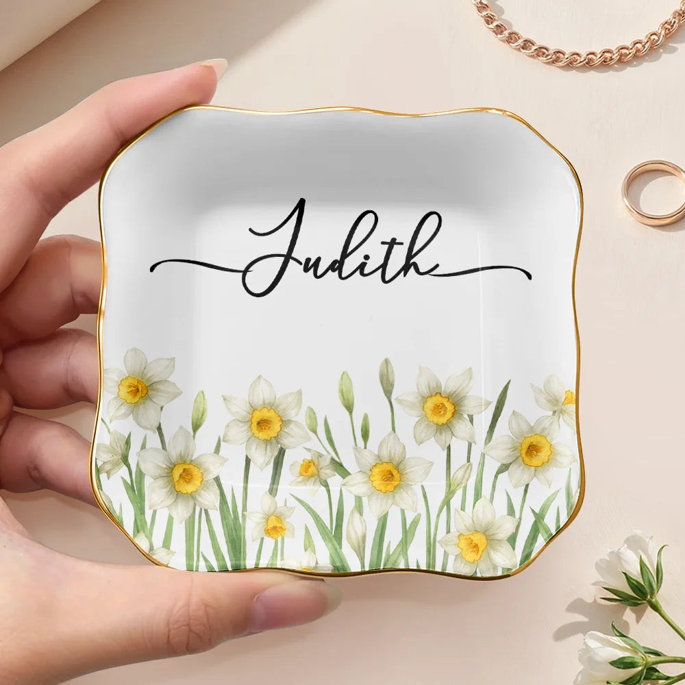 Personalized Birth Flower Jewelry Dish – Custom Watercolor Ring Tray for Birthdays & Bridesmaids