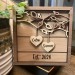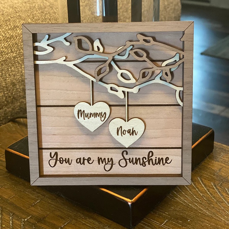 Each 3d sign comes with two engraved names and quote and made of gorgeous walnut, birch and cherry wood. As wood has varying grains no two signs will be exactly alike as the graining will vary.