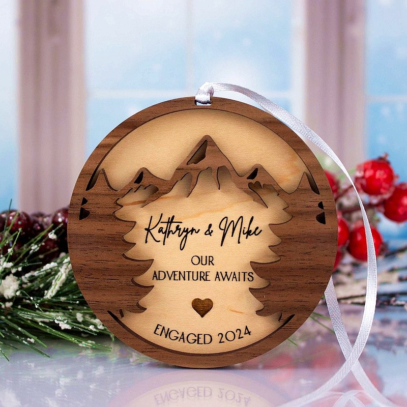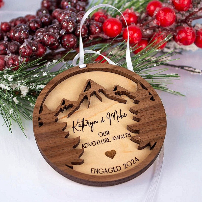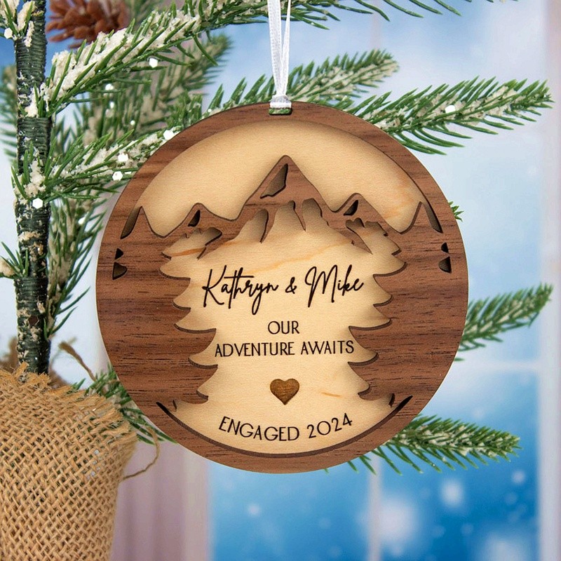 Personalized Couples Wooden Engraved Decorations Our First Christmas Engaged Married Mountains Trees Ornament