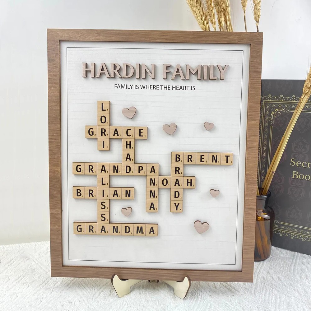 Celebrate family connections with this personalized family name crossword wall art, perfect for adding a meaningful touch to any home. Customize each wooden tile with the names of your loved ones, creating a unique family name puzzle that makes a beautiful decor piece and heartfelt gift.