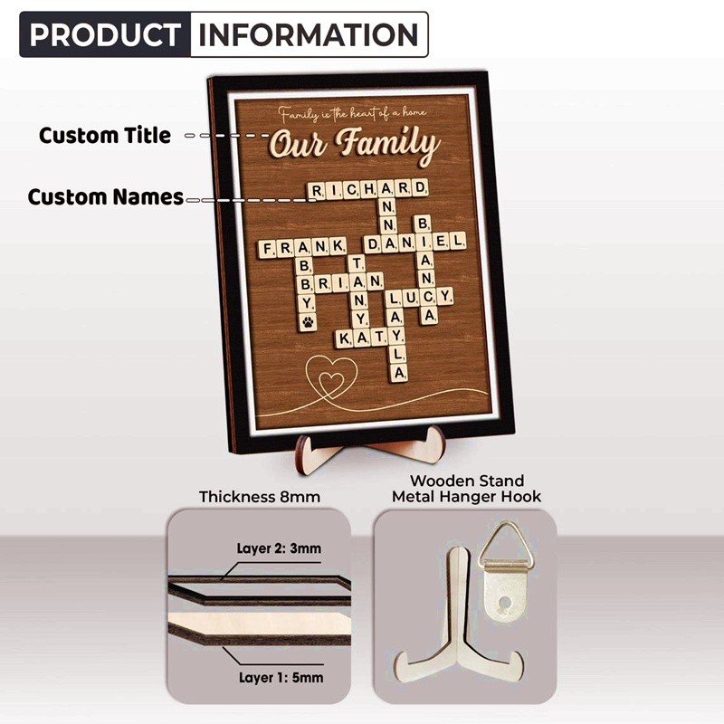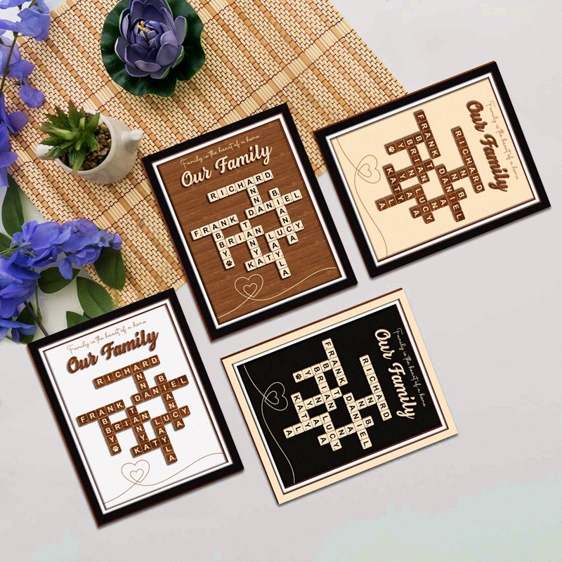Personalized Family Name Crossword Scrabble Wooden Sign - Christmas Gift Idea