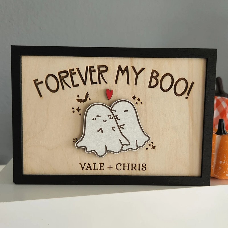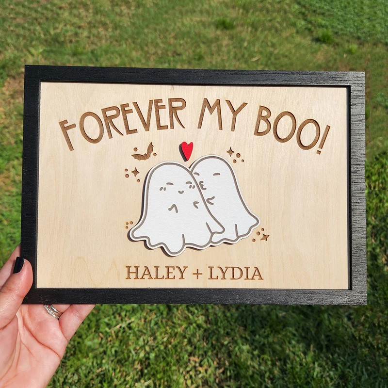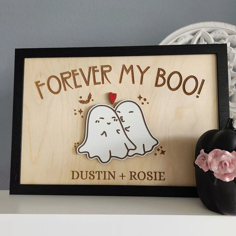 Personalized Forever My Boo Wooden Sign Cute Ghost Couples Gift
