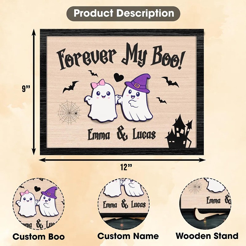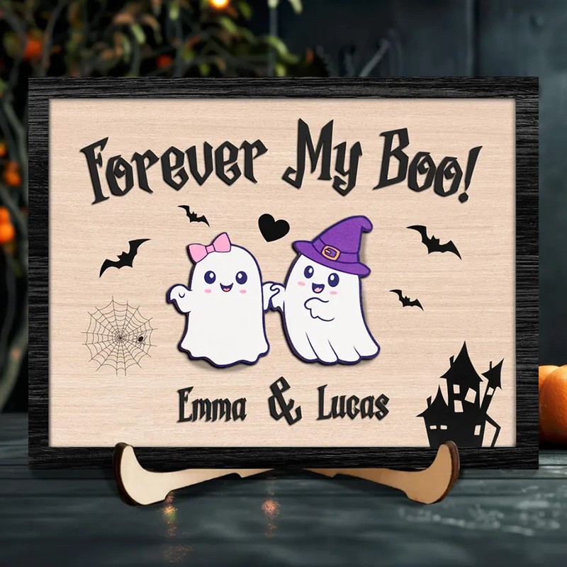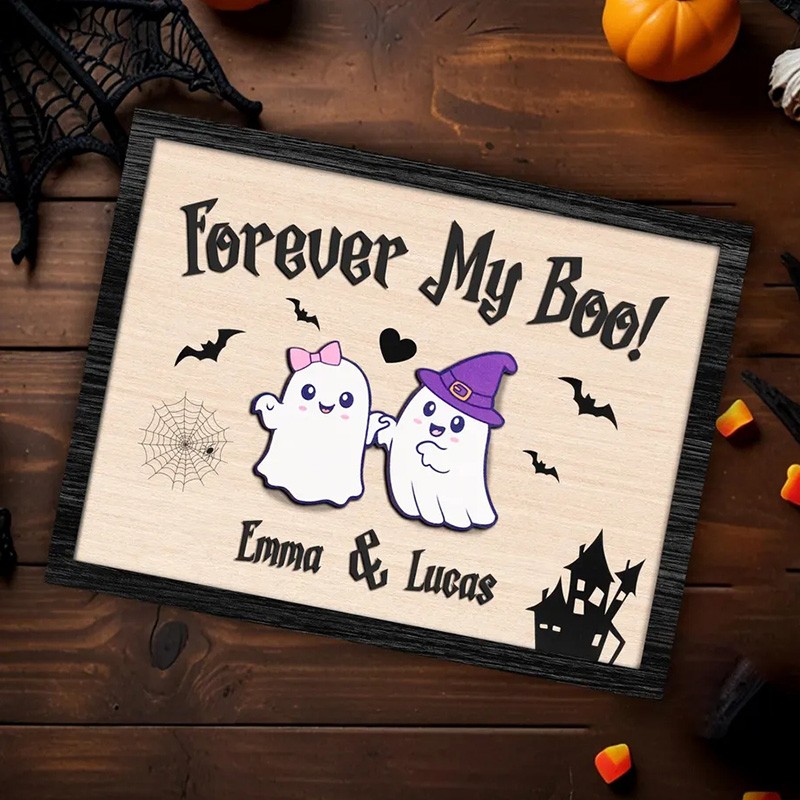 Personalized Forever My Boo Wooden Sign Cute Ghost Couples Gift