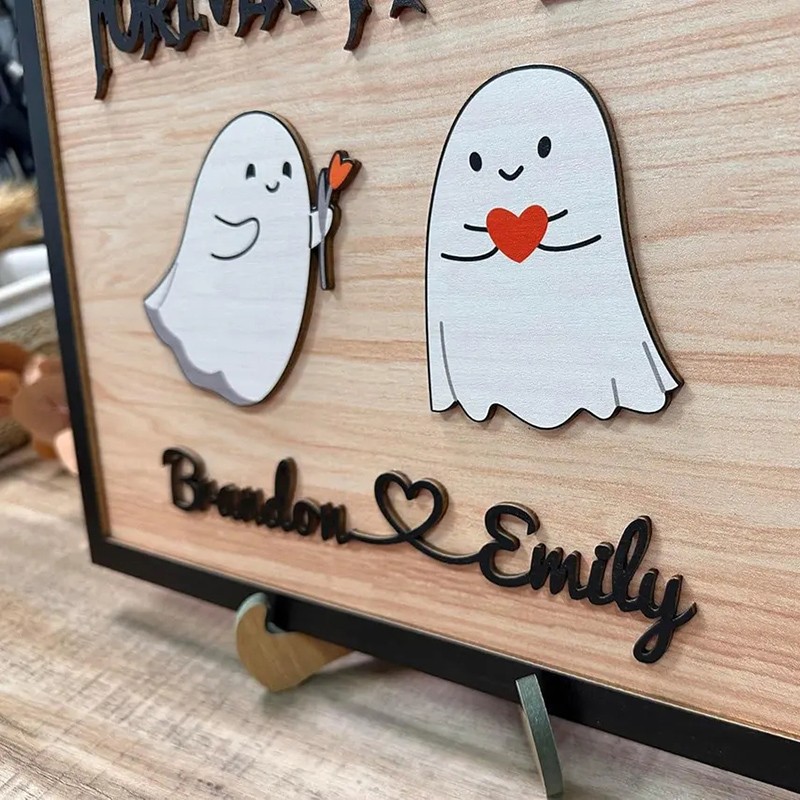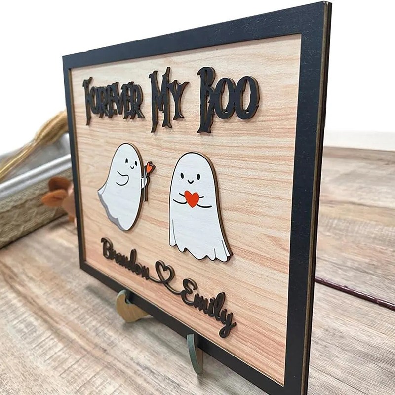 Personalized Forever My Boo Wooden Sign Cute Ghost Couples Gift