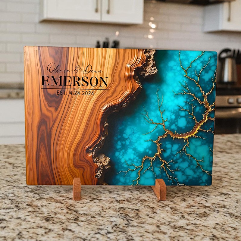 Personalized Glass Charcuterie Board Epoxy River Resin Cutting Board Kitchen Decor Closing Gifts