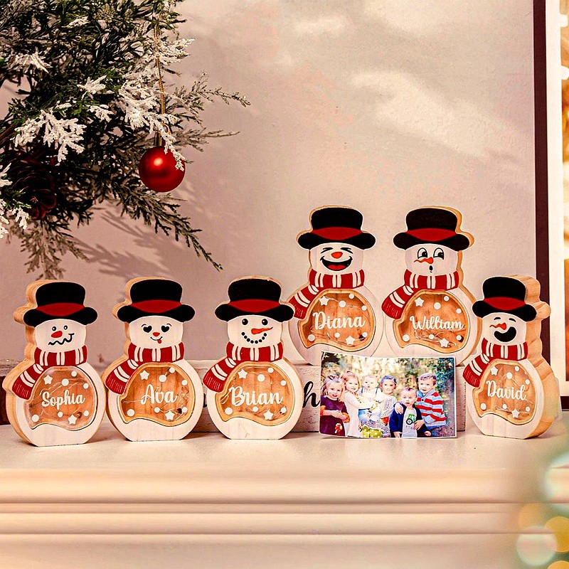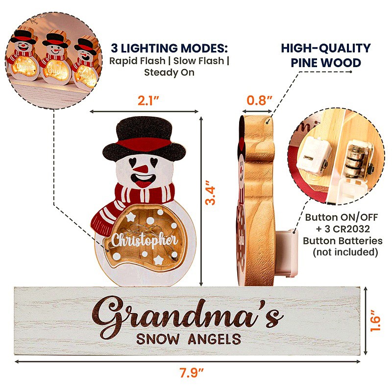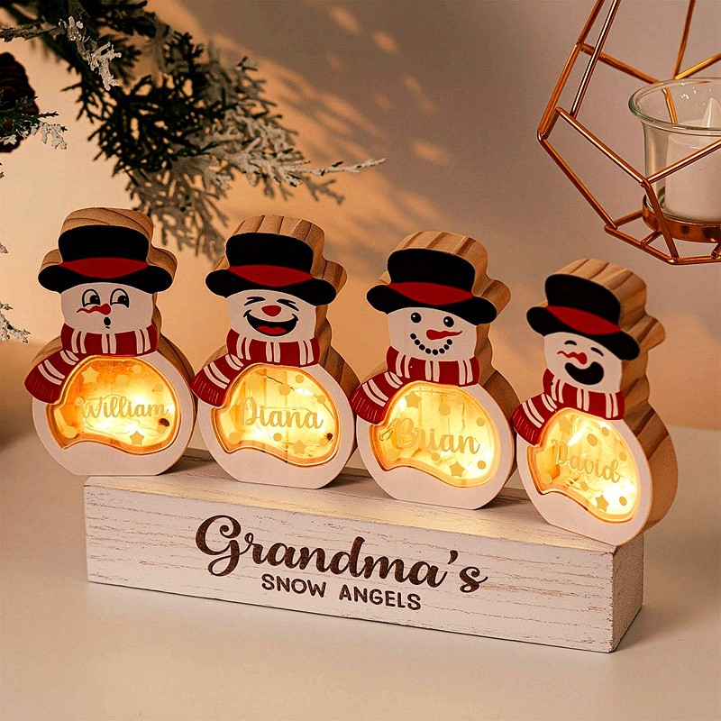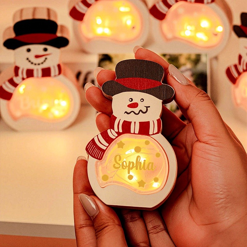 Personalized Lighted Wooden Snowman with Tabletop Name Block Sign Christmas Gift for Family