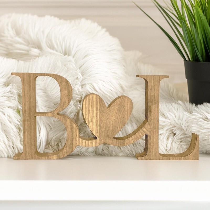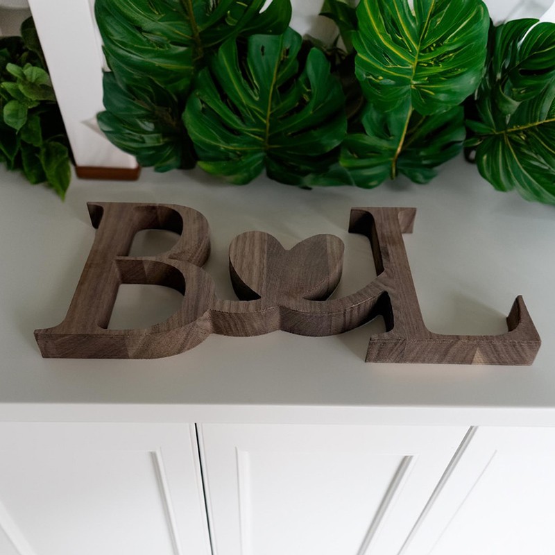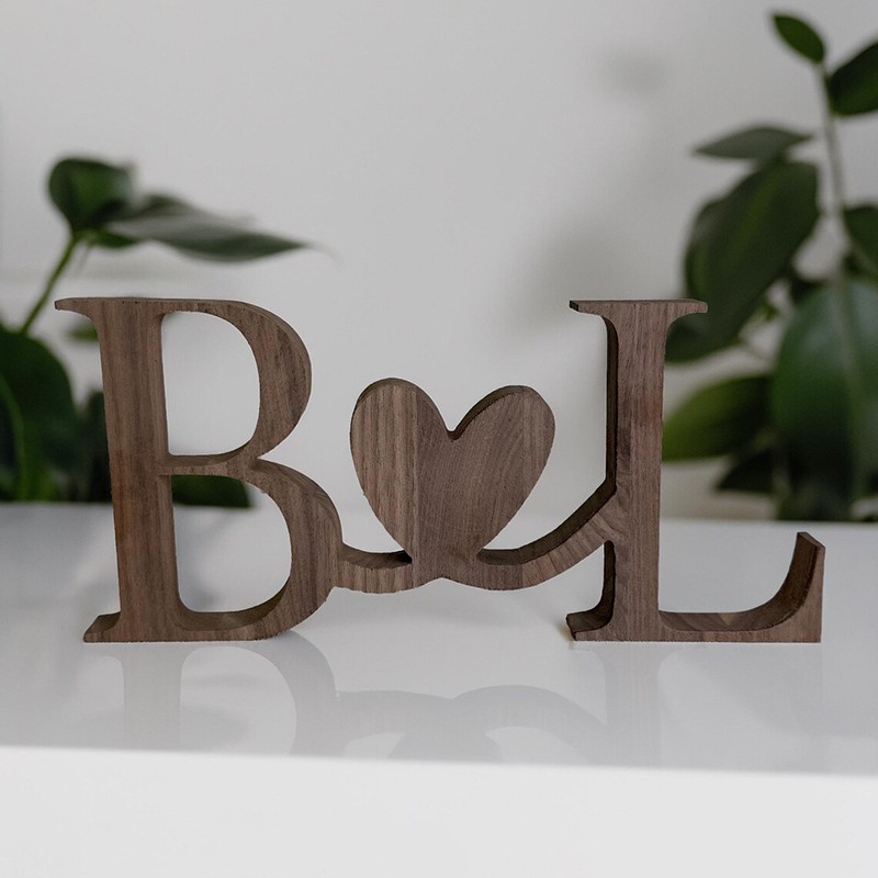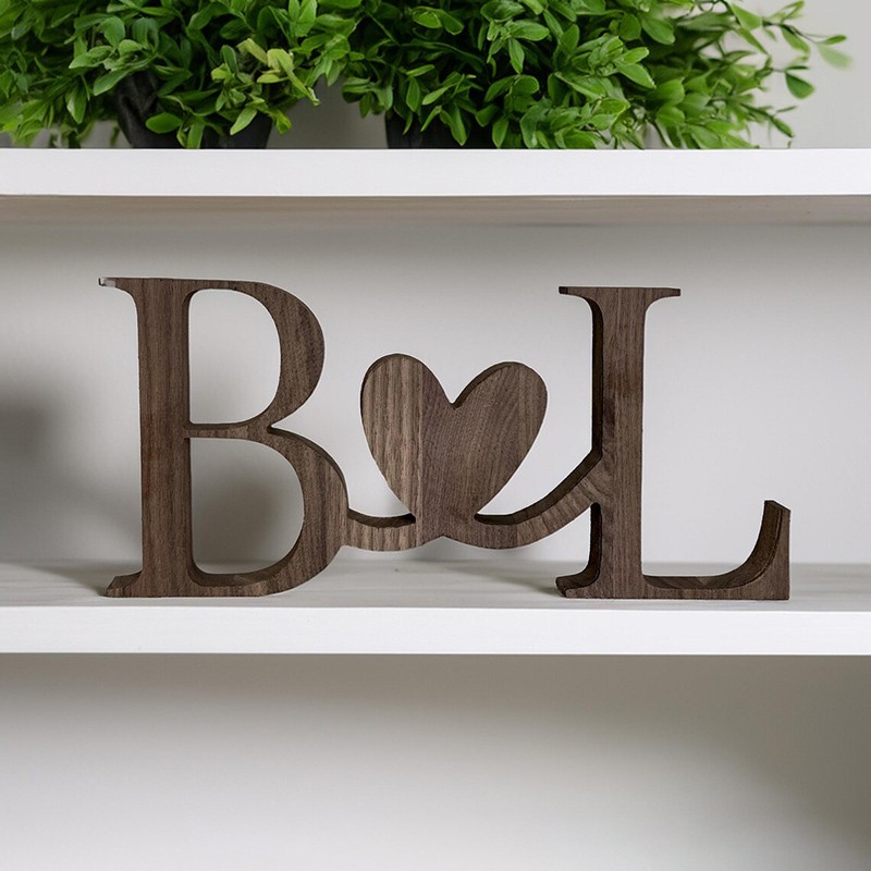 Celebrate your love with this beautifully crafted standing wood initials sign, perfect for weddings, anniversaries, or as a thoughtful gift for your special someone. Each set is customized with two initials joined by a heart, symbolizing lasting connection and affection.