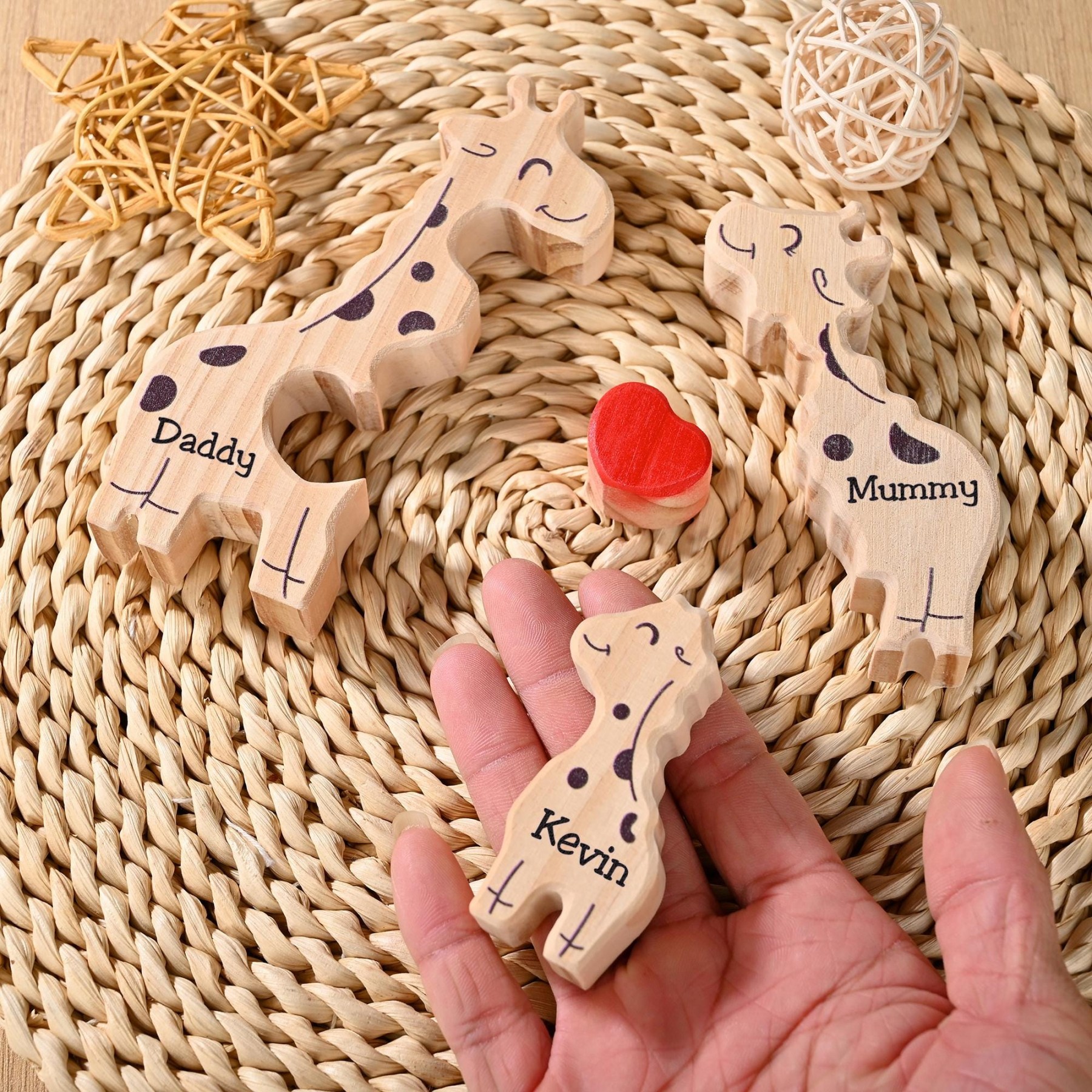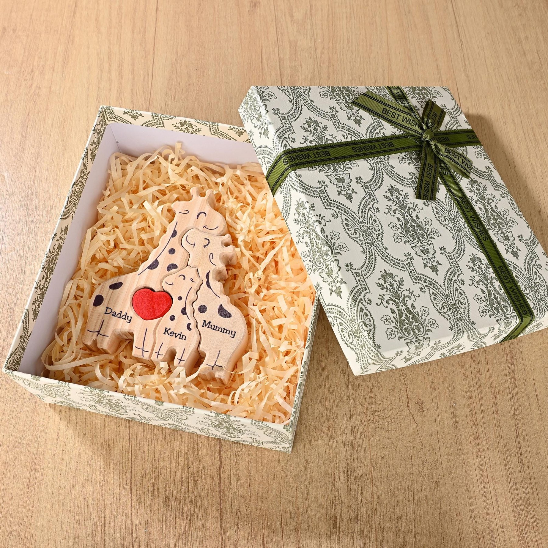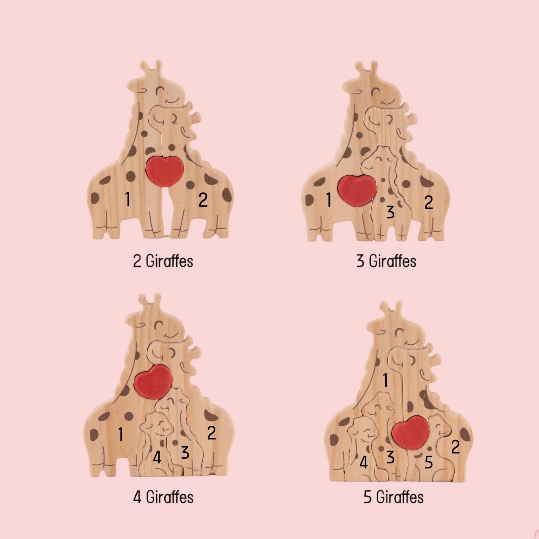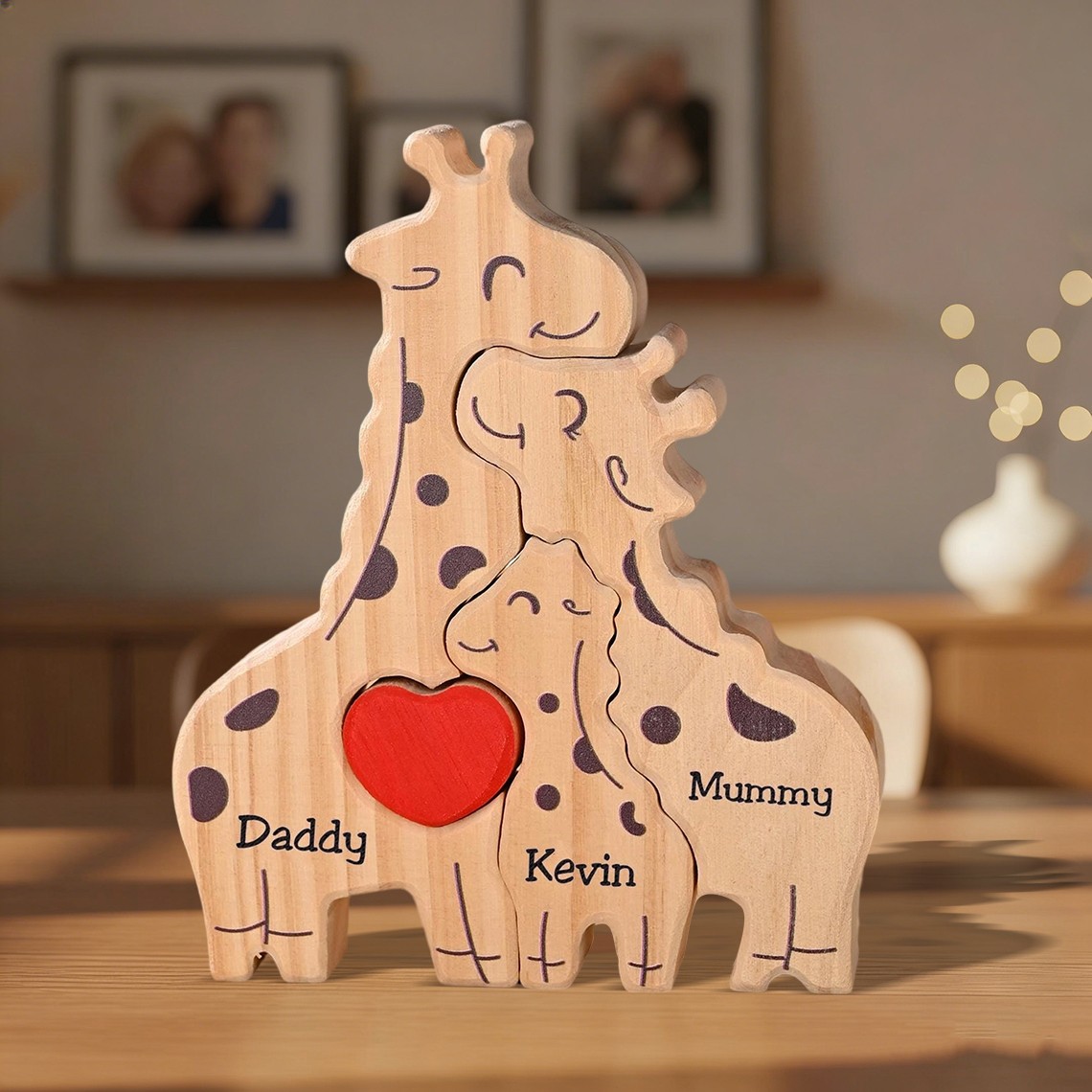 Personalized Wooden Giraffe Family Puzzle with Family Names