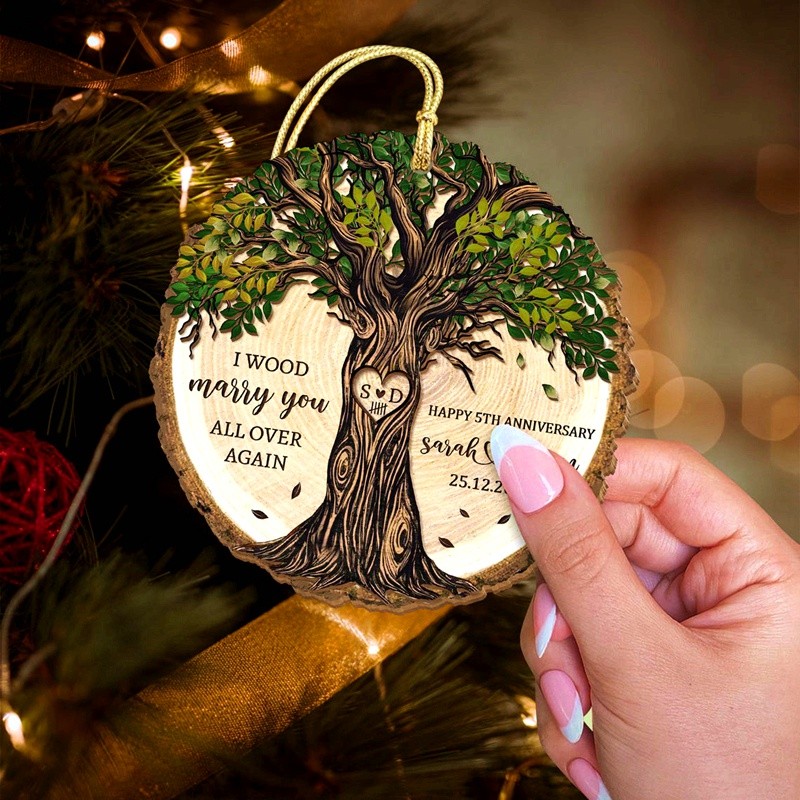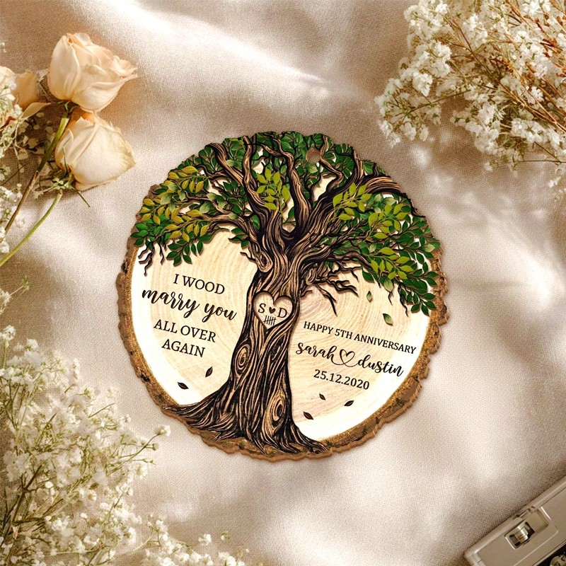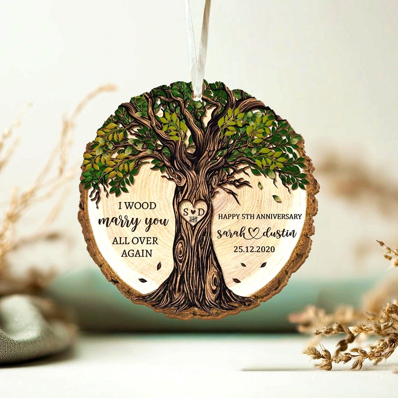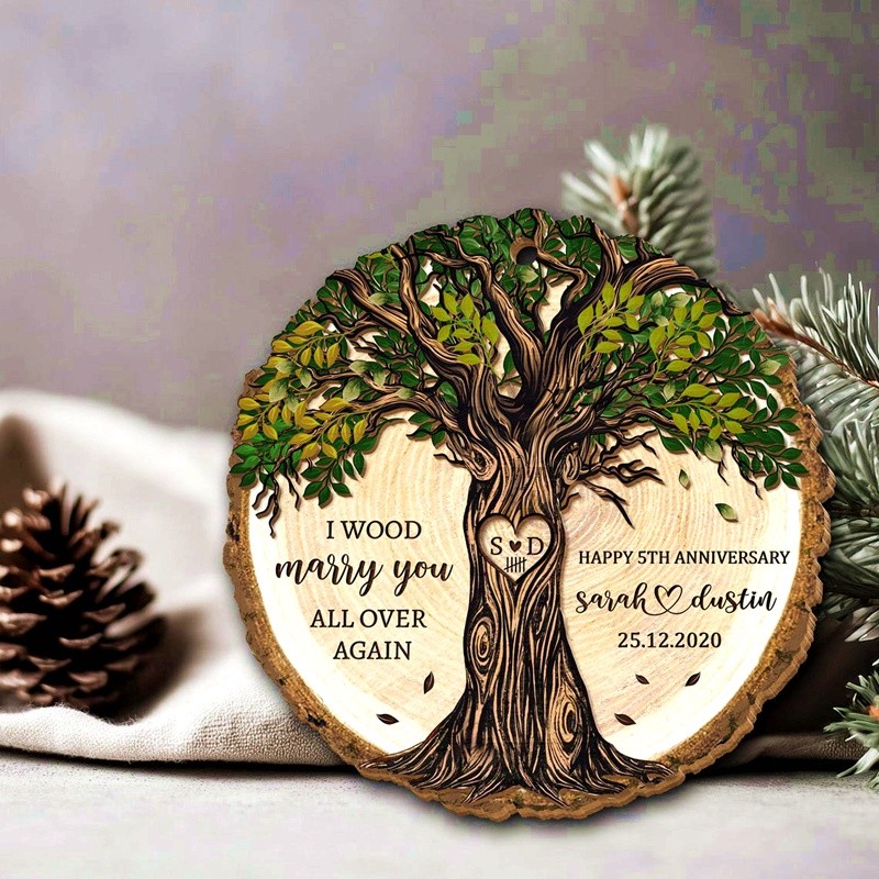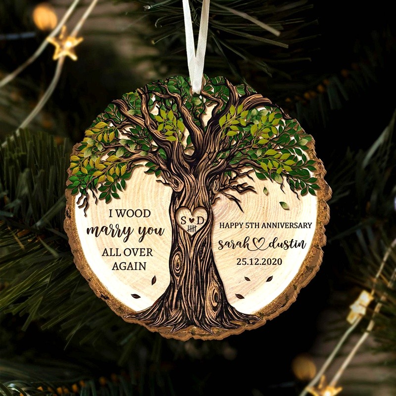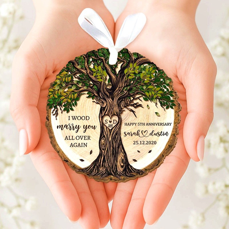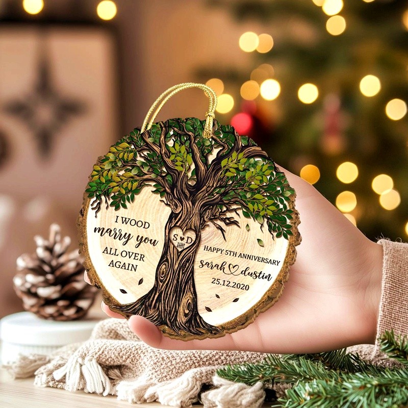 Personalized Wooden Ornament Wood Anniversary Gift For Couples