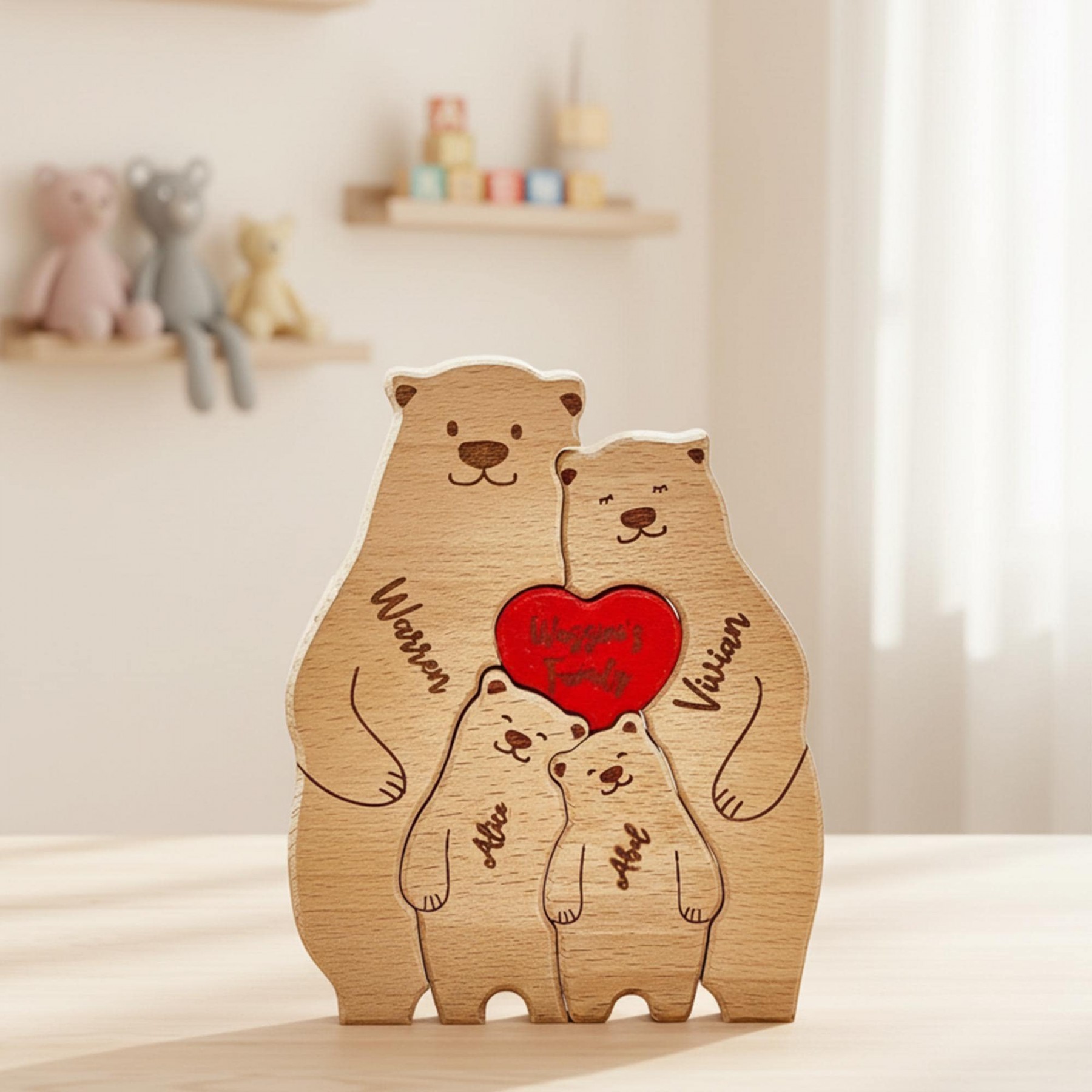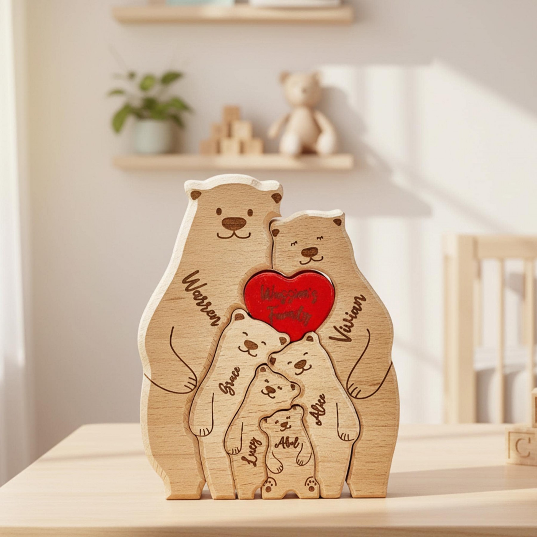 Looking for a meaningful, eco-friendly gift to celebrate a special occasion? Our handcrafted wooden bear puzzles make the perfect choice! Made from natural wood, each puzzle is a unique keepsake personalized with your family's names, symbolizing the bond you share. Ideal for anniversaries, birthdays, New Year’s, or welcoming new family members, these puzzles create lasting memories with engraved names that won’t fade over time.