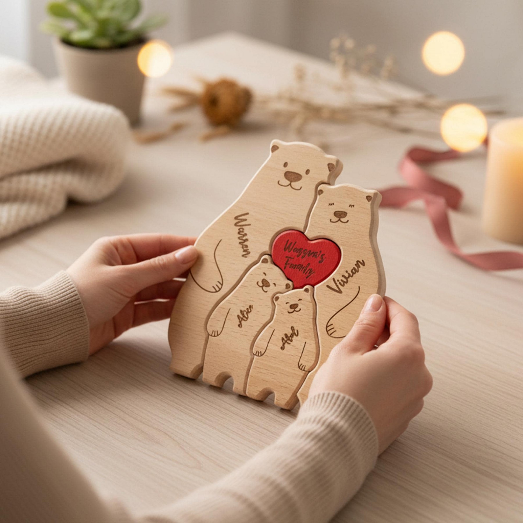 Your family's unique bond and cherished memories with a personalized wooden bear art puzzle.